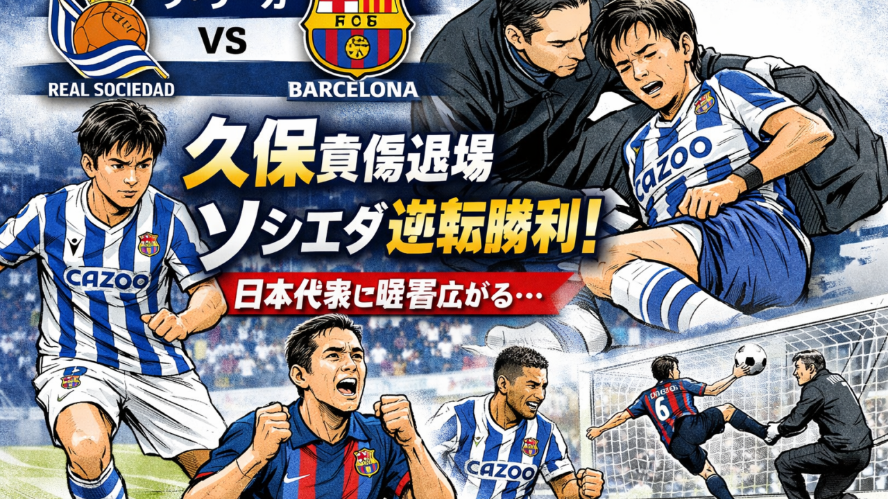 その影響もあってか、後半25分にバルセロナが反撃。ヤマルのクロスにラッシュフォードがヘディングで合わせ、レアル・ソシエダは同点ゴールを許し、スタジアムには不穏な空気が漂った。