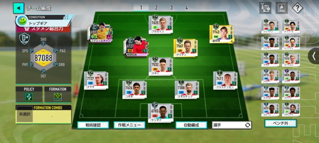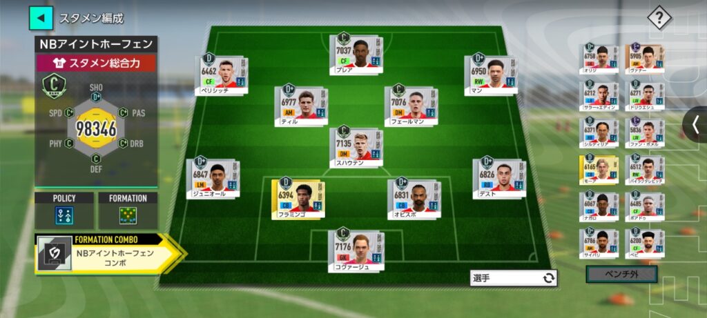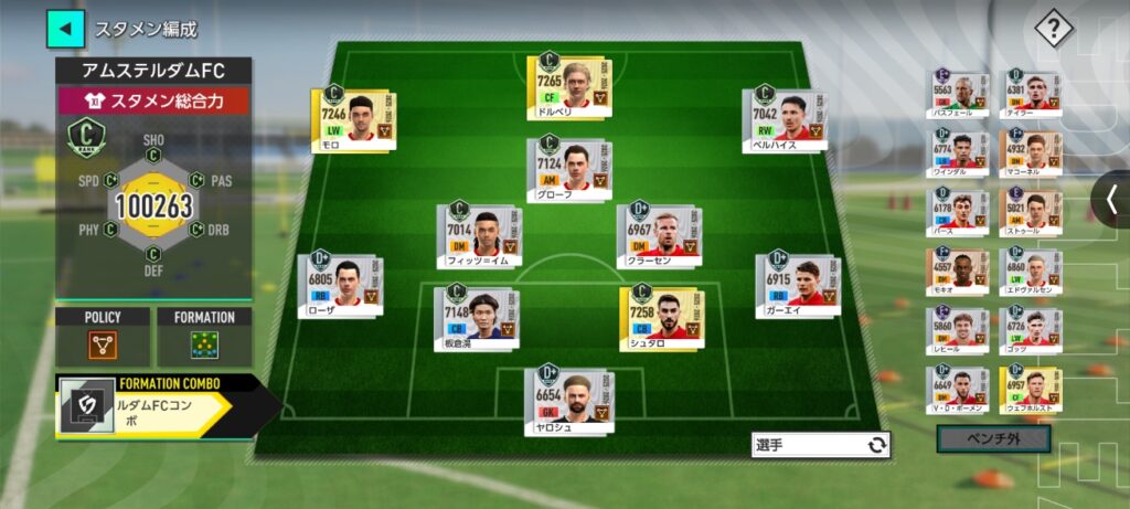 ドイツリーグでは「堂安律」が所属しているACフランクフルト(アイントラハト・フランクフルト)を選択しました。