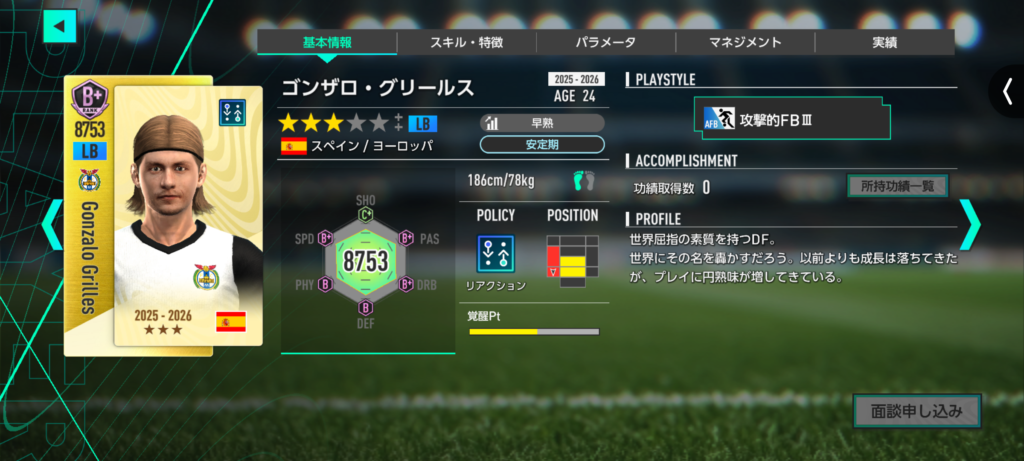 現状、スタイルLV3以上の選手は直接オファーでは獲得できないため、対象のスタイルを所持しているSP選手を事前に所有しておく必要があります。