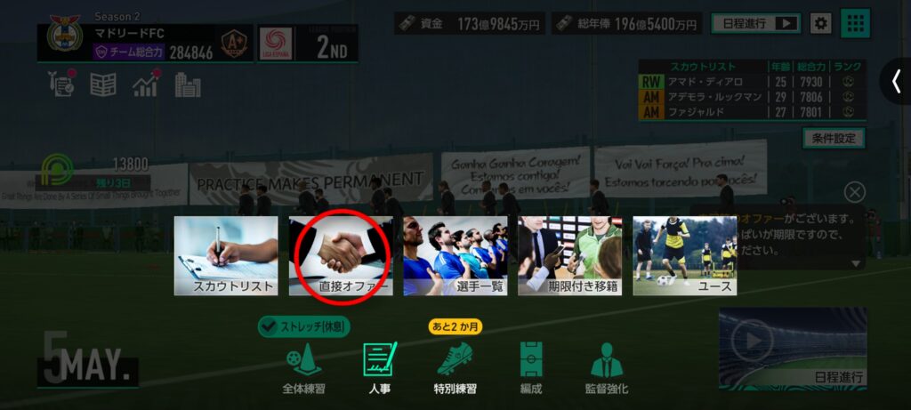 ただし、必要な選手がチームにいない場合でも、直接オファー機能を利用することでスタイルを所持した選手を獲得し、フォメコンの発動条件を満たすことが可能です。